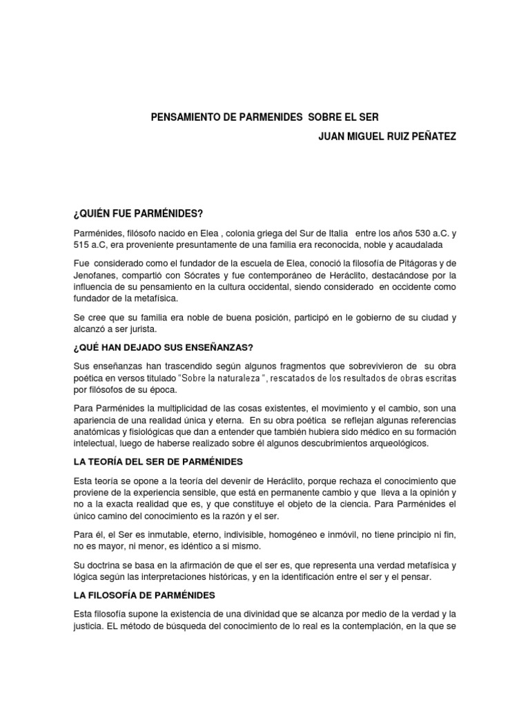 PENSAMIENTO DE PARMENIDES SOBRE EL SER