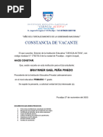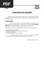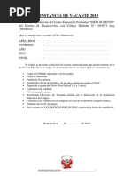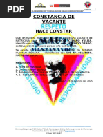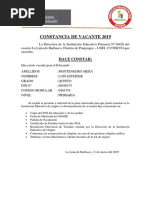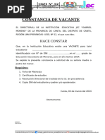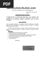 Que, existe una vacante en la Institución Educativa Nº 38841/Mx-U de Lambras del