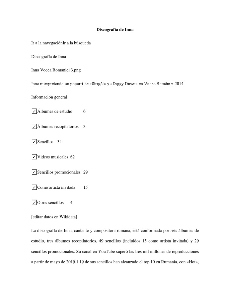 La discografía de Inna, cantante y compositora rumana, está conformada por seis álbumes de