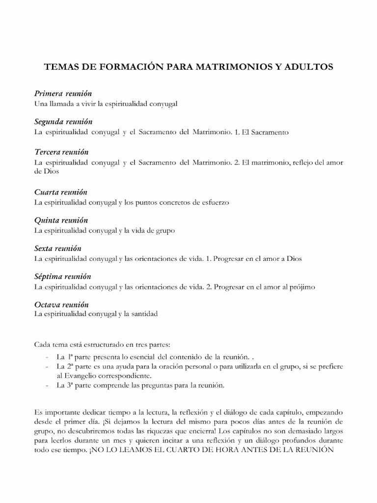 TEMAS DE FORMACION PARA MATRIMONIOS Y ADULTOS