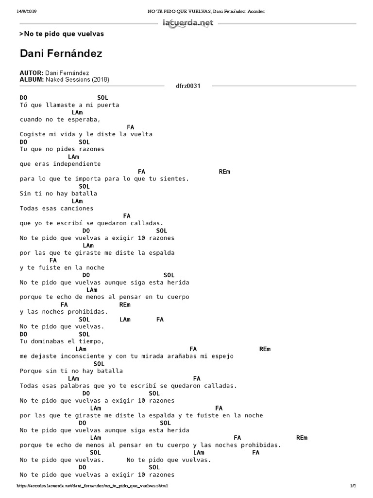 14/9/2019 NO TE PIDO QUE VUELVAS, Dani Fernández: Acordes