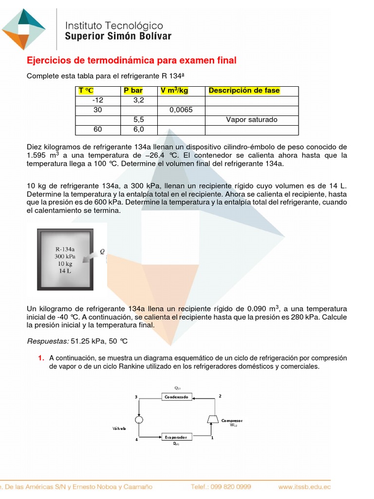 2. Una máquina frigorífica utiliza el ciclo estándar de compresión de vapor. Produce 50 kW