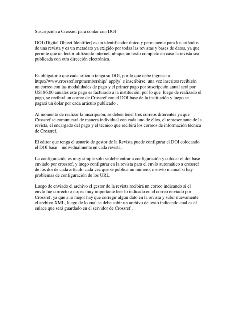 Suscripción a Crossref para contar con DOI