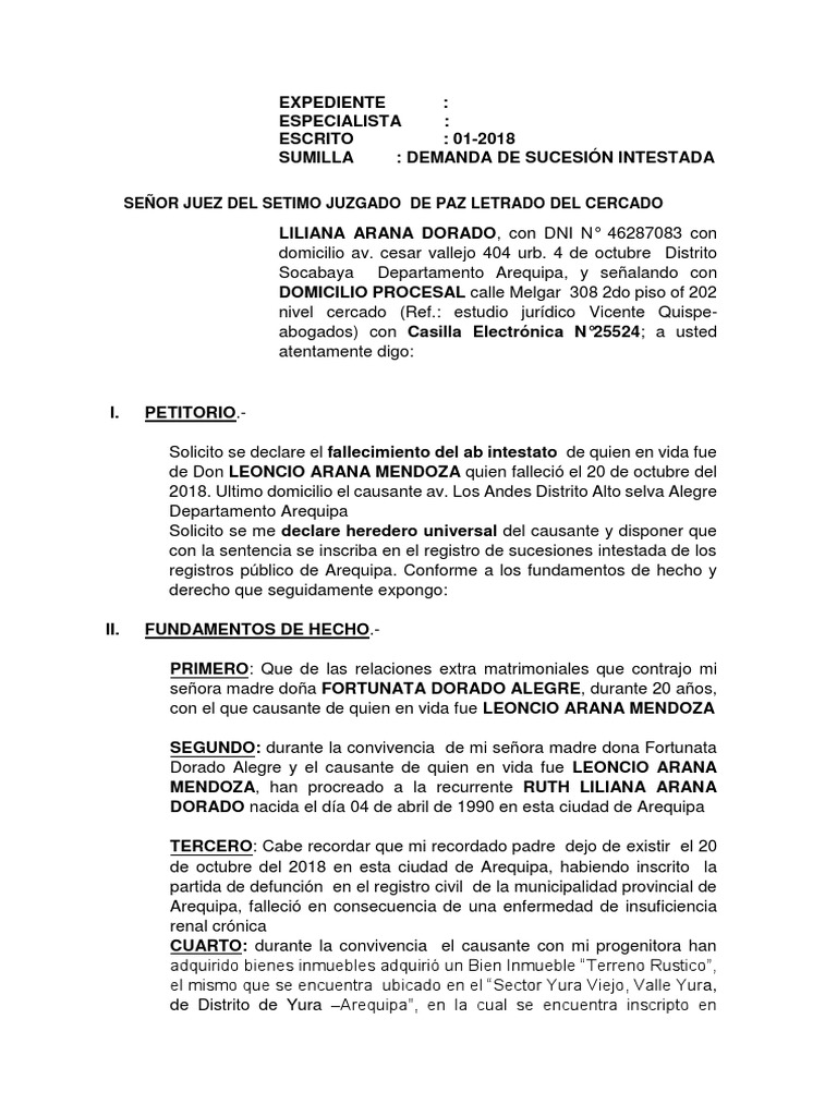SUMILLA : DEMANDA DE SUCESIÓN INTESTADA