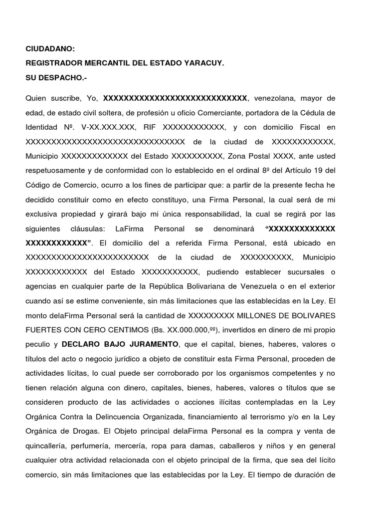 Quien suscribe, Yo, XXXXXXXXXXXXXXXXXXXXXXXXXXXX, venezolana, mayor de
