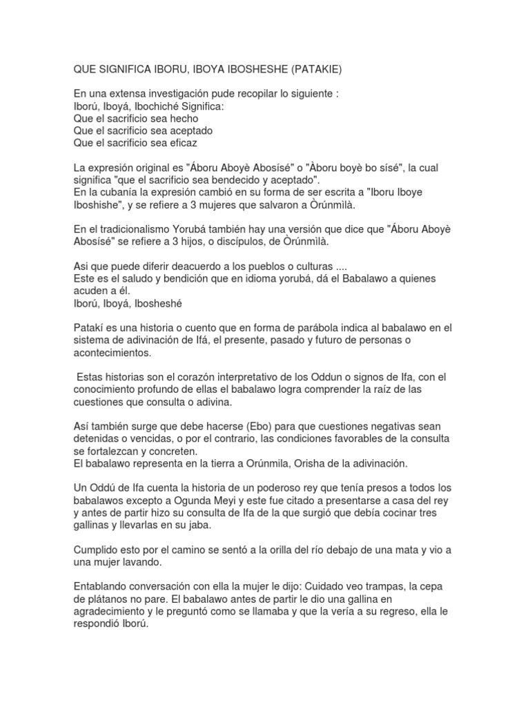 QUE SIGNIFICA IBORU, IBOYA IBOSHESHE (PATAKIE)