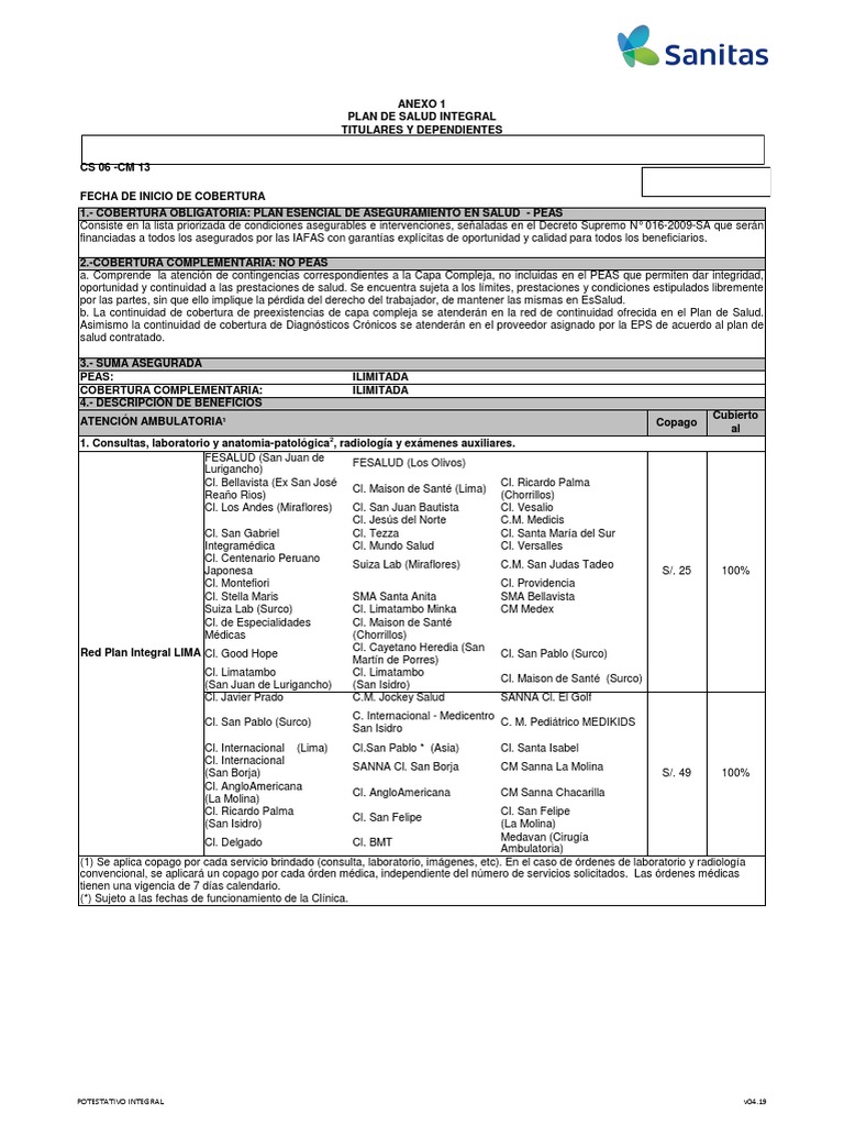 Plan de Salud Integral y Coberturas