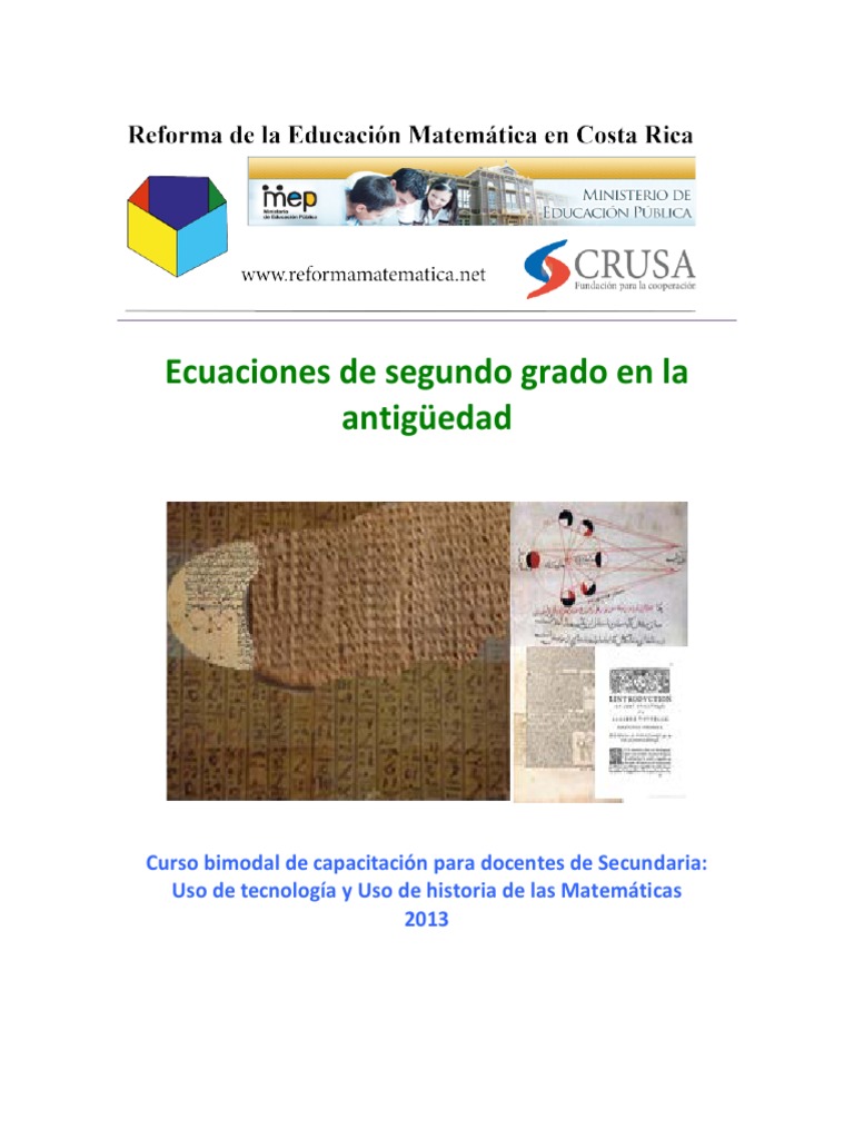 de segundo grado, con la idea de generalizar los métodos utilizados por los personajes