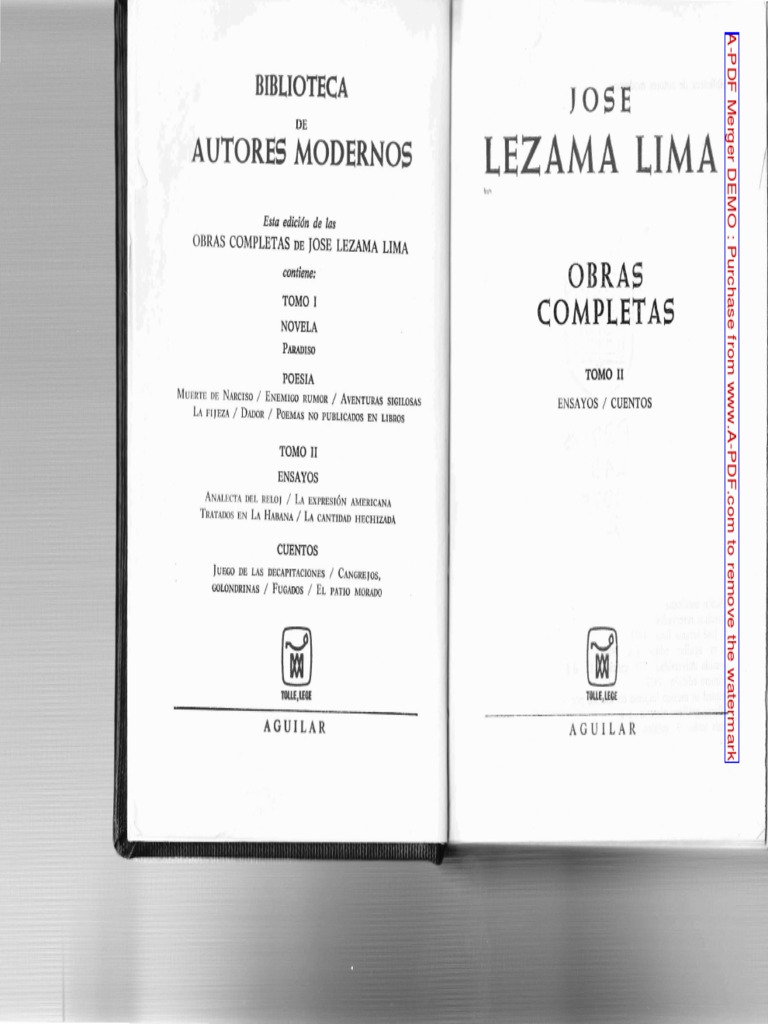98 LEZAMA LlMA.-OBRAS COMPLETAS 1'.NSi\ YÜS.-ANALECTA DEL RELOJ 99