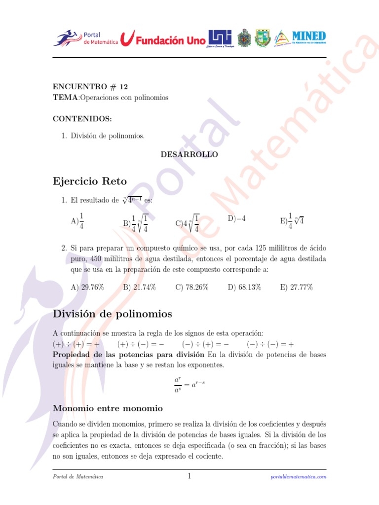 1. División de polinomios.