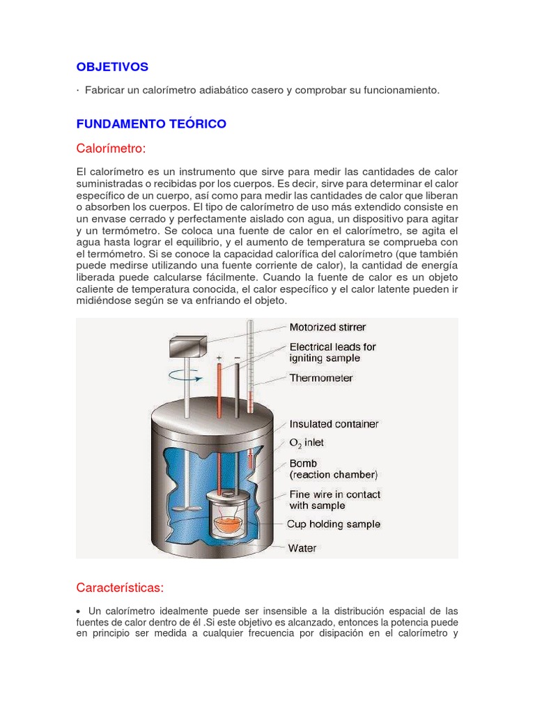 y un termómetro. Se coloca una fuente de calor en el calorímetro, se agita el