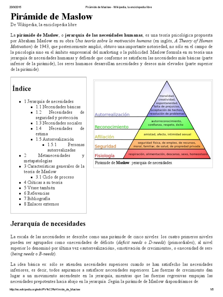 20/3/2015 Pirámide de Maslow Wikipedia, la enciclopedia libre