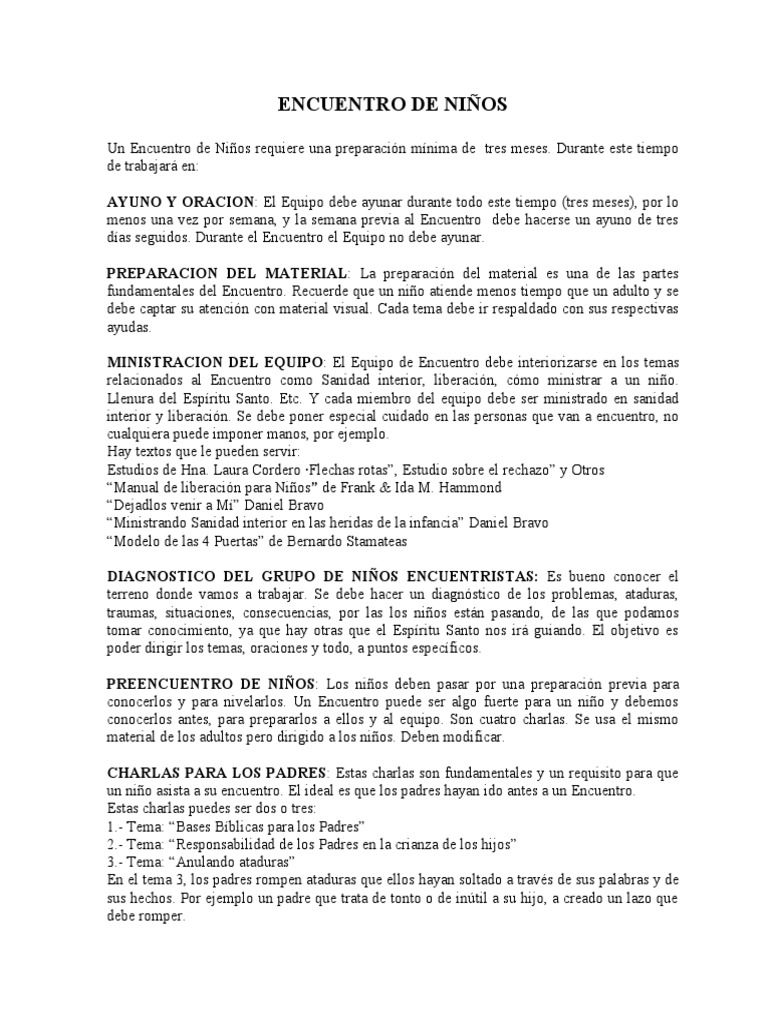 fundamentales del Encuentro. Recuerde que un niño atiende menos tiempo que un adulto y se