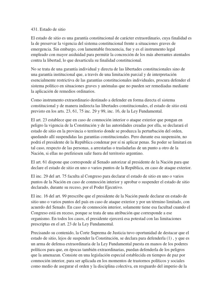 estado sitio subsisten la Constitución y las libertades que ella establece y las eventuales