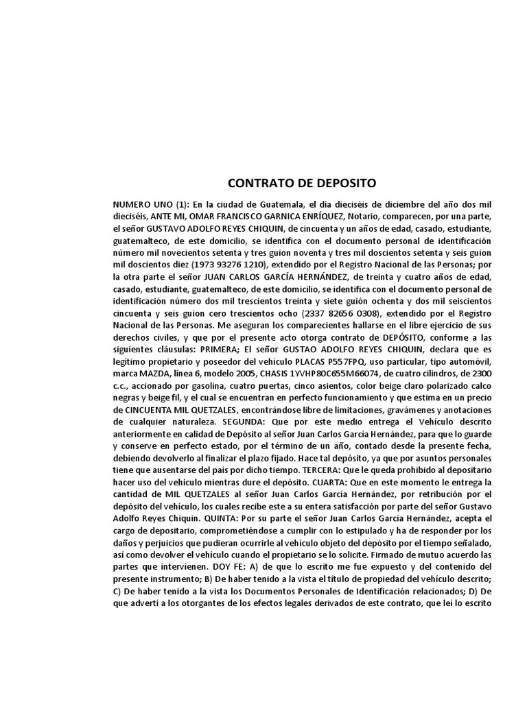 derechos civiles, y que por el presente acto otorga contrato de DEPÓSITO, conforme a las