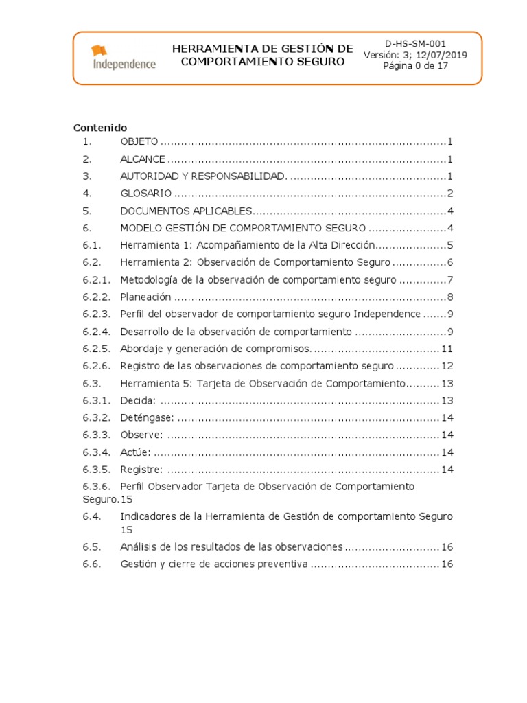 COMPORTAMIENTO SEGURO Página 2 de 17
