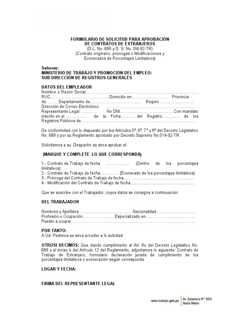Trabajo de Extranjero, formulario declaración jurada de cumplimiento de los