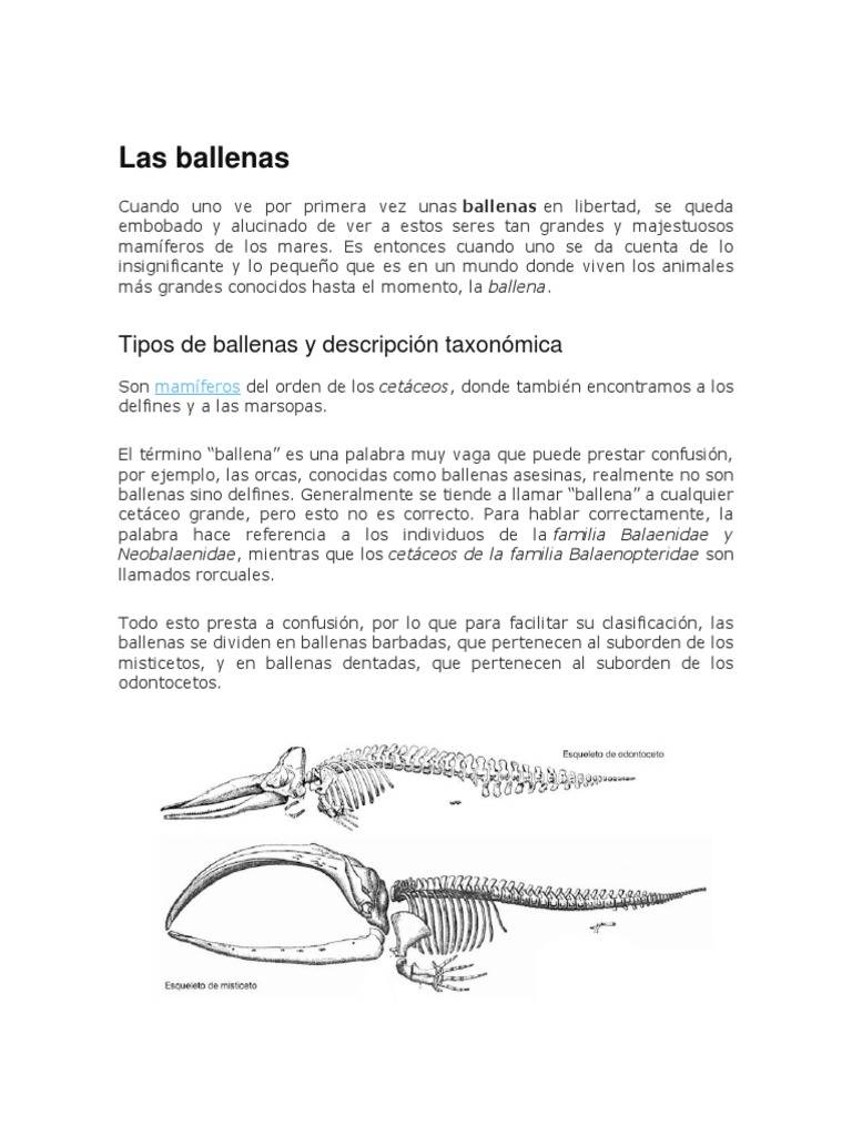 Tipos de ballenas y descripción taxonómica