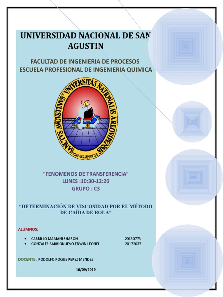 DETERMINACIÓN DE VISCOSIDAD POR EL MÉTODO DE CAÍDA DE BOLA