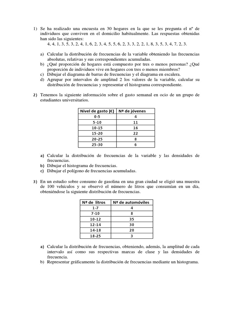 1) Se ha realizado una encuesta en 30 hogares en la que se les pregunta el nº de