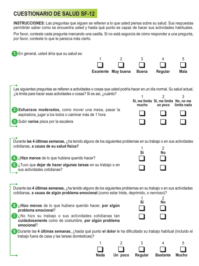 SF-12 Health Survey3,4. El SF-12 es una versión reducida del Cuestionario de Salud SF-36
