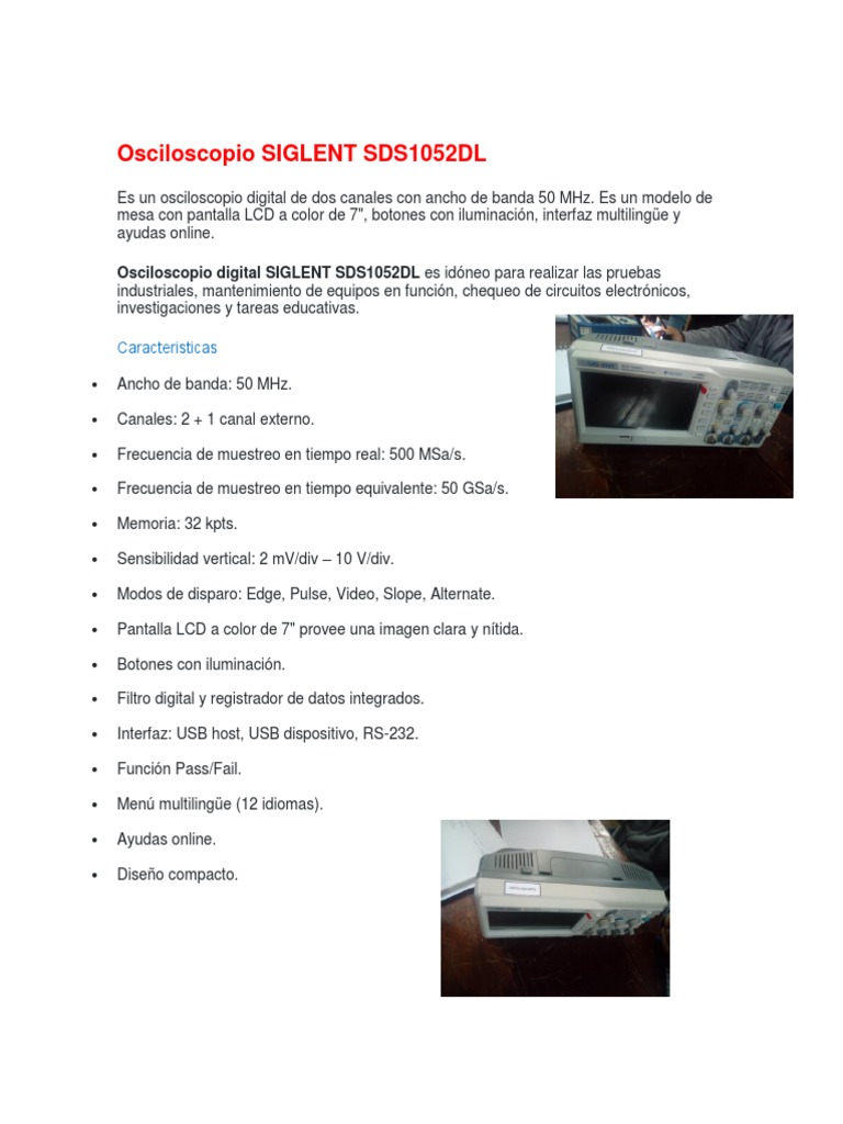 Osciloscopio digital SIGLENT SDS1052DL es idóneo para realizar las pruebas