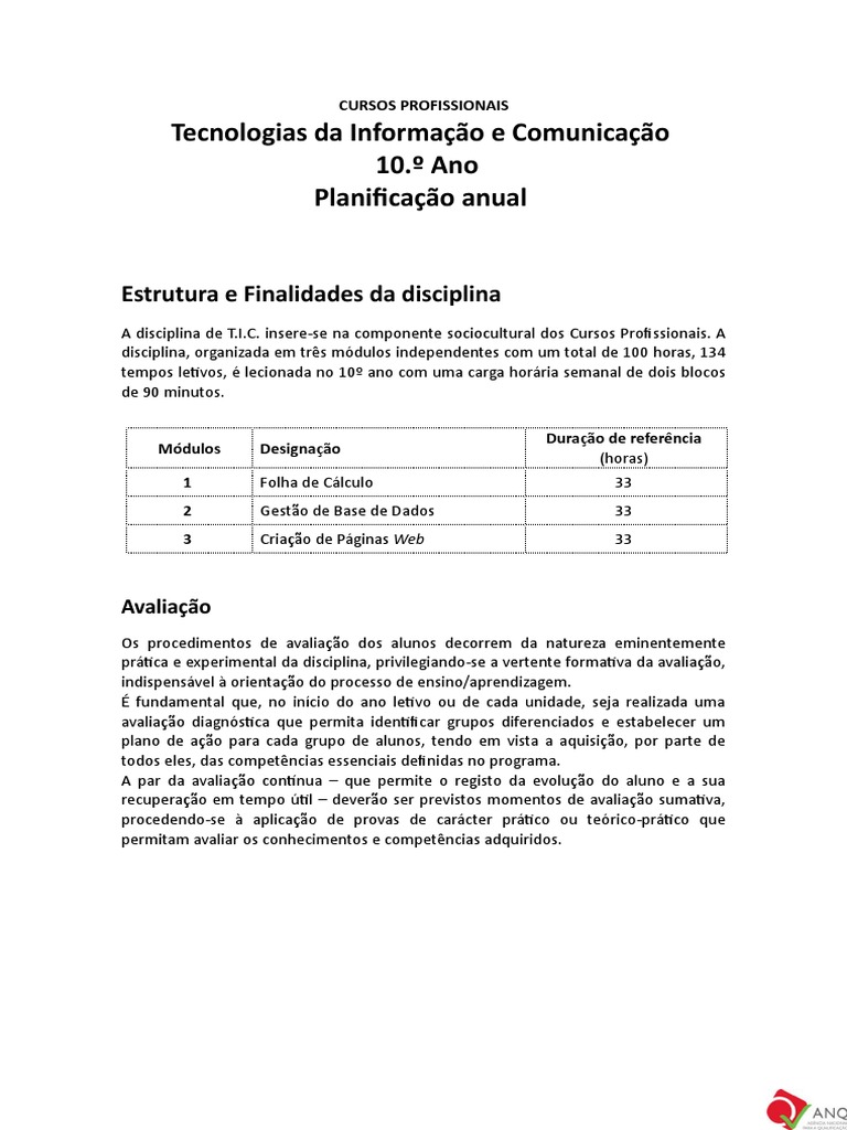 prática e experimental da disciplina, privilegiando-se a vertente formativa da avaliação,