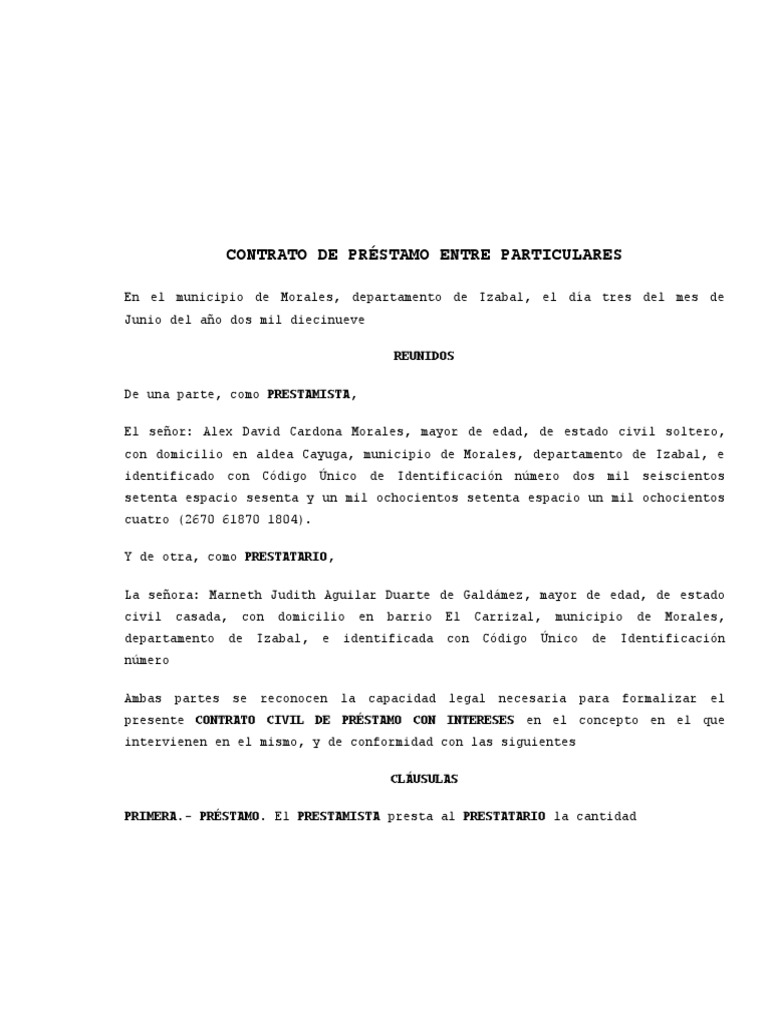 CONTRATO DE PRÉSTAMO ENTRE PARTICULARES