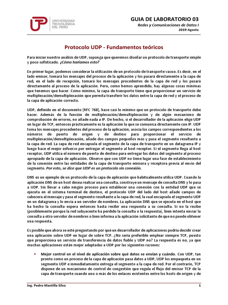 sabemos, UDP es un protocolo simplificado y sencillo. Debido a que UDP es simple, desarrollaremos