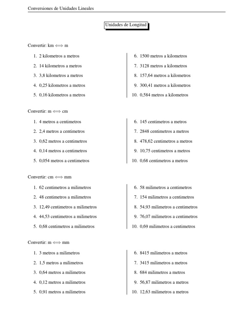 4. 44,53 centimetros a milimetros 9. 76,07 milimetros a centimetros