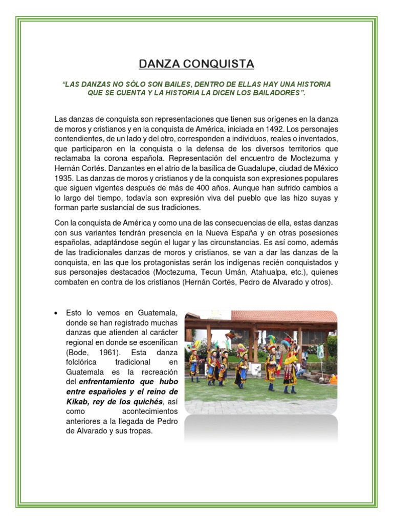 Las danzas de conquista son representaciones que tienen sus orígenes en la danza