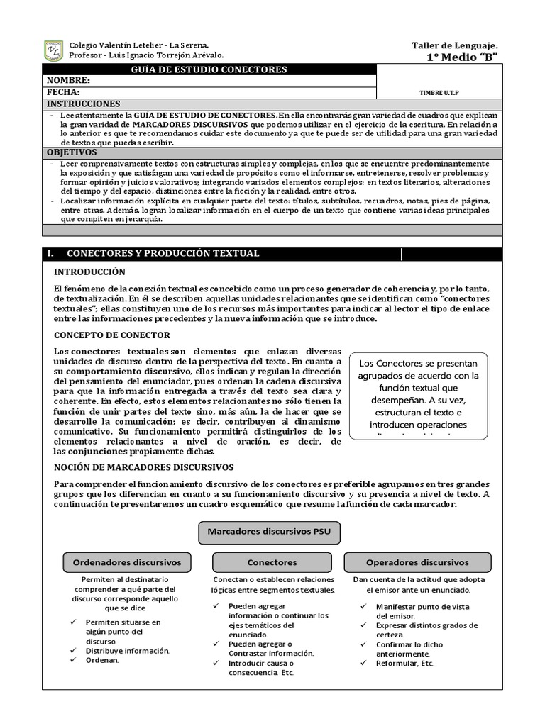 - Lee atentamente la GUÍA DE ESTUDIO DE CONECTORES. En ella encontrarás gran variedad de cuadros que explican