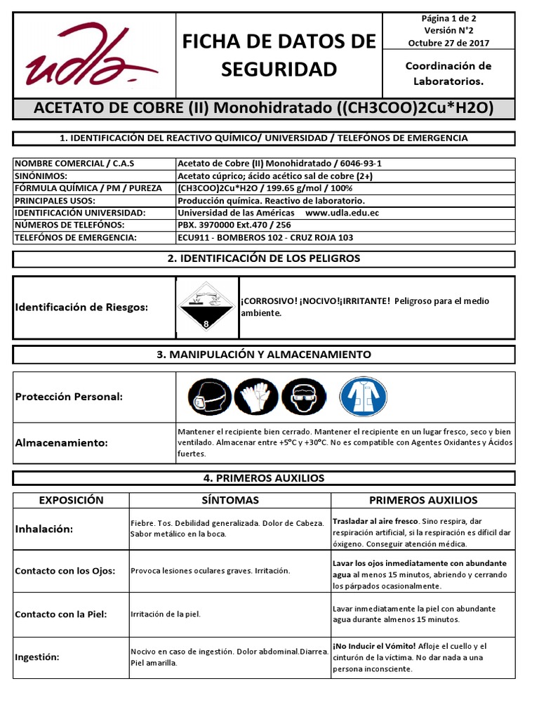 NOMBRE COMERCIAL / C.A.S Acetato de Cobre (II) Monohidratado / 6046-93-1