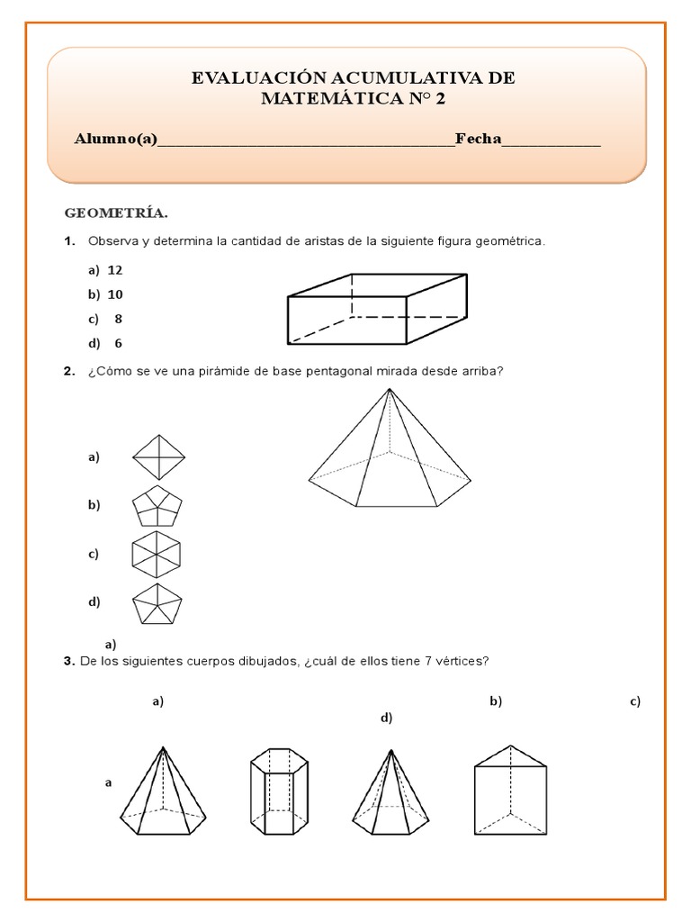3. De los siguientes cuerpos dibujados, ¿cuál de ellos tiene 7 vértices?