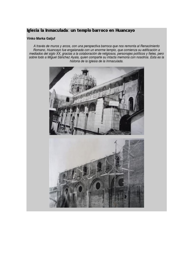 Romano, Huancayo fue engalanada con un enorme templo, que comienza su edificación a