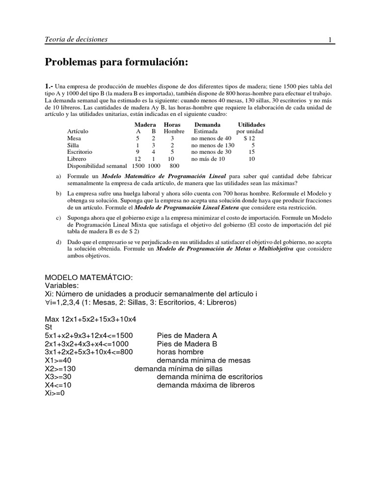 Problemas para formulación: