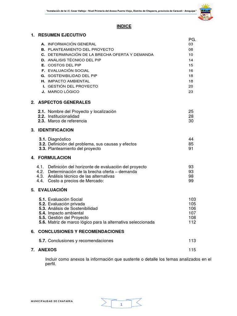 El presente Proyecto de Inversión Pública en la fase de Pre-inversión a Nivel de Perfil