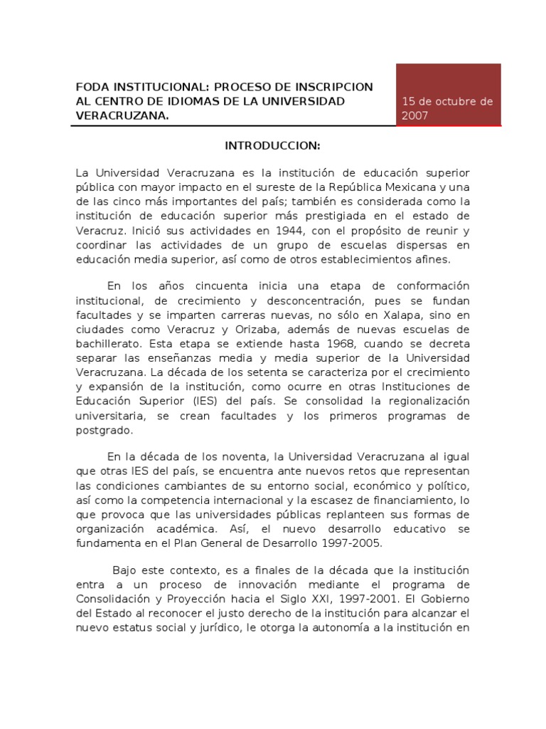 FODA INSTITUCIONAL: PROCESO DE INSCRIPCION