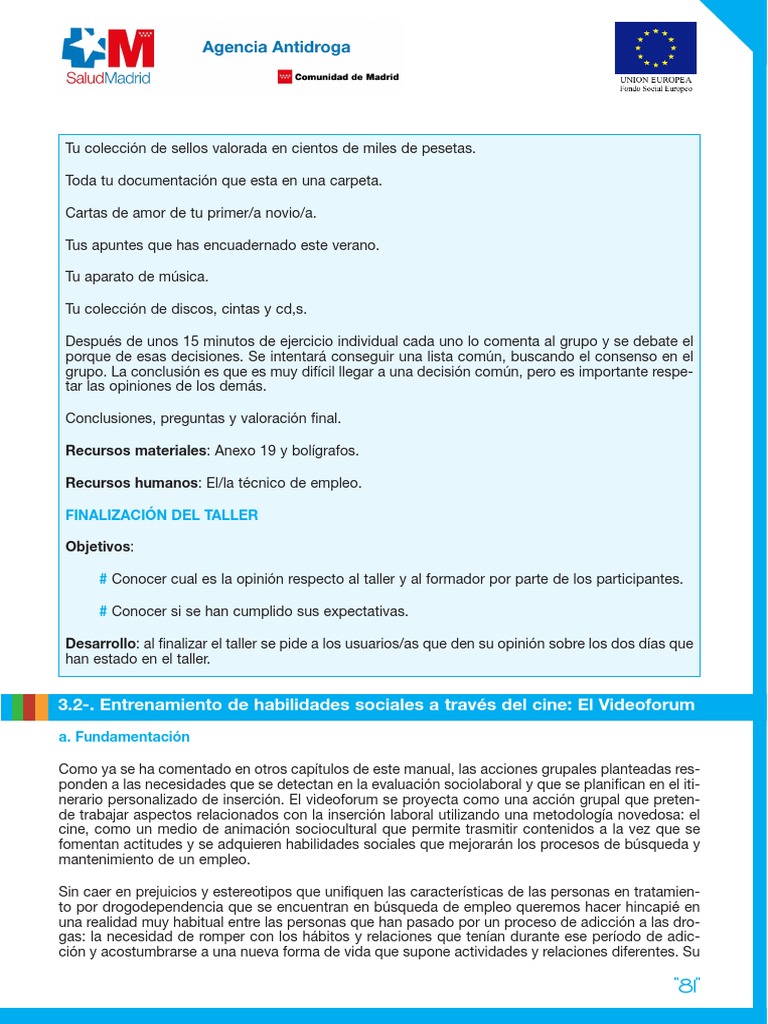relaciones afectivas adecuadas, la participación en el videoforum tendrá, en principio, efectos posi-