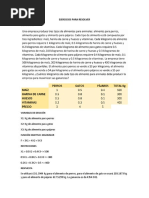 carbohidratos. En un día dado, la lista de alimentos incluye 5 ingredientes que se pueden