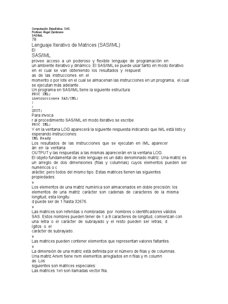 Lenguaje Iterativo de Matrices (SAS/IML)