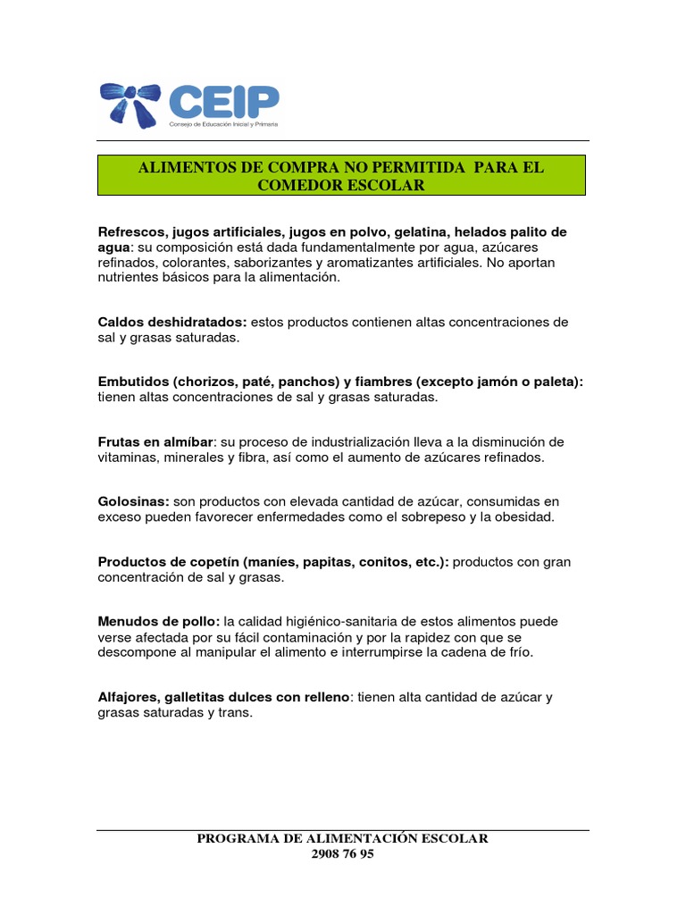 ALIMENTOS DE COMPRA NO PERMITIDA PARA EL