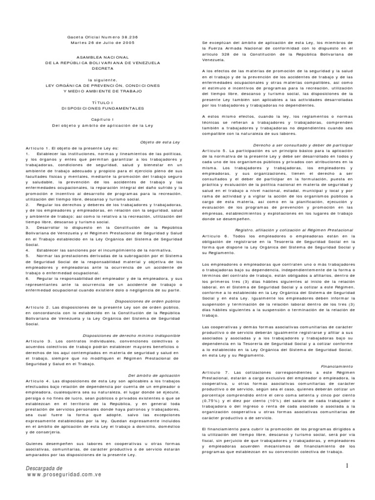 Ley Orgánica del Trabajo. queda en vigencia el Reglamento de las Condiciones de Higiene y