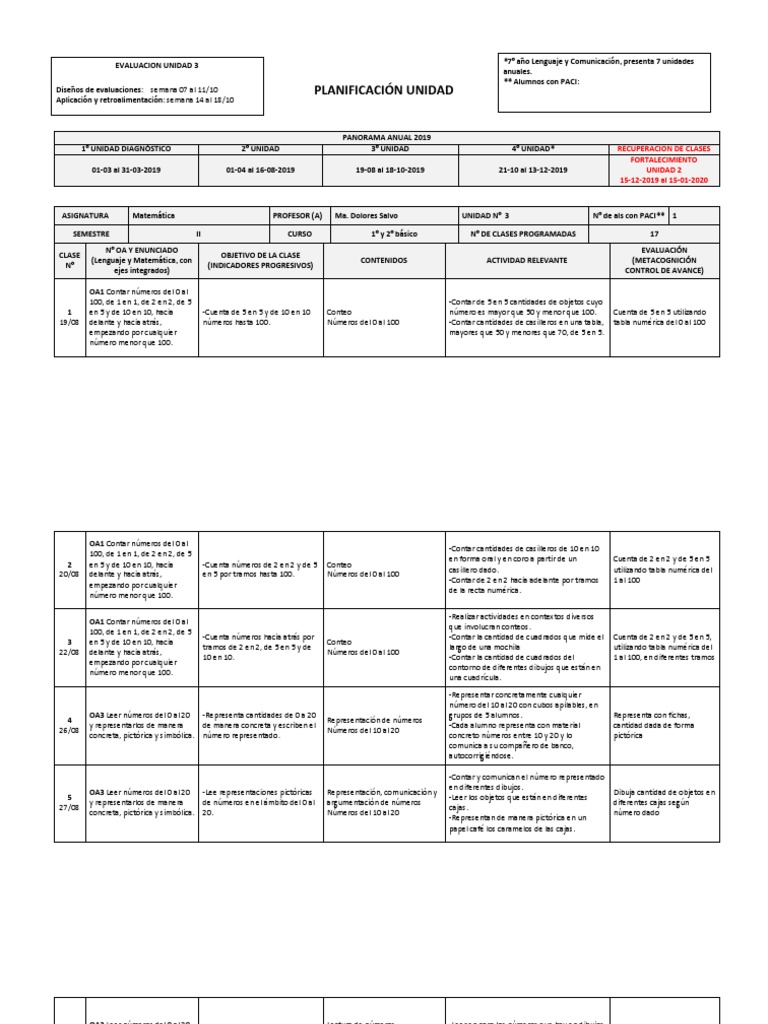 ASIGNATURA Matemática PROFESOR (A) Ma. Dolores Salvo UNIDAD N° 3 N° de als con PACI** 1