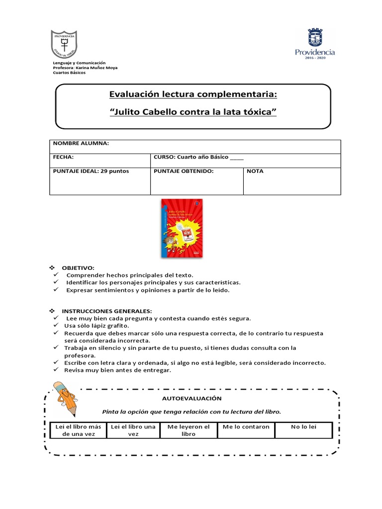 I.- COMPRENSIÓN LECTORA (16 PUNTOS)