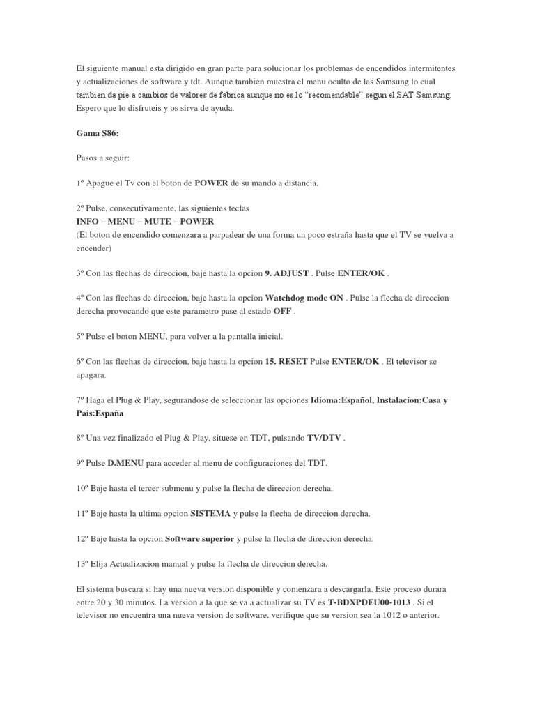 y actualizaciones de software y tdt. Aunque tambien muestra el menu oculto de las Samsung lo cual