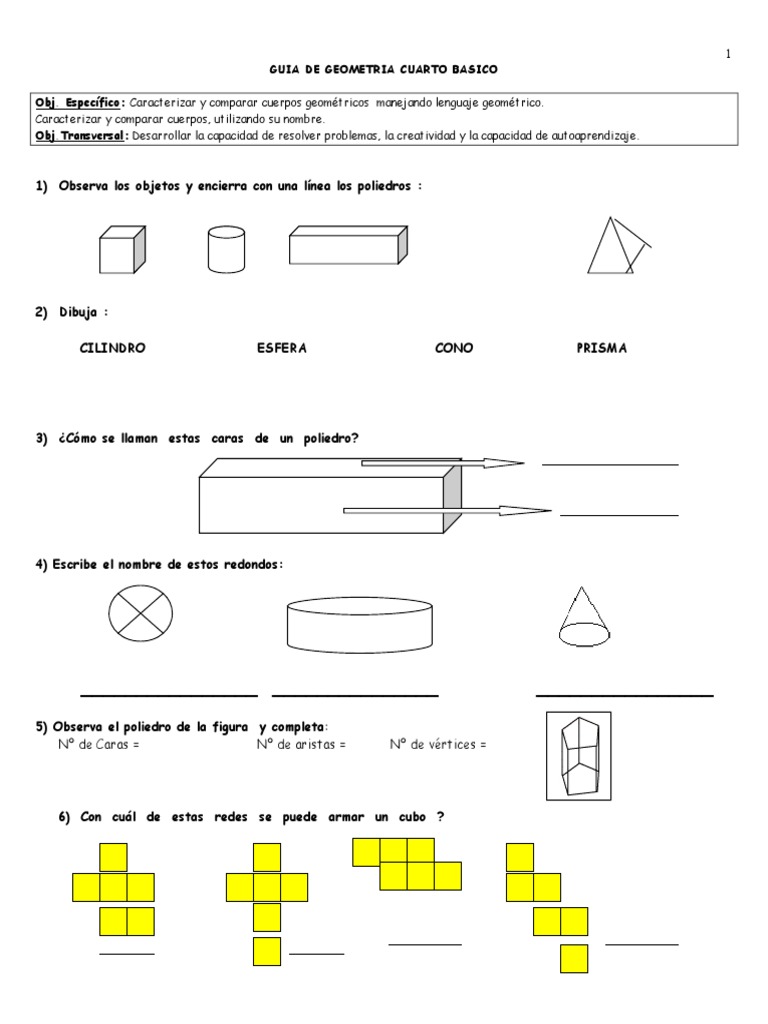 Obj. Específico: Caracterizar y comparar cuerpos geométricos manejando lenguaje geométrico.