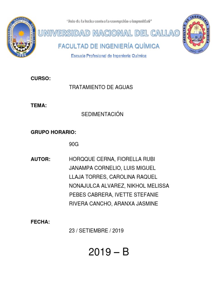 La sedimentación es una operación unitaria consistente en la separación por la acción de la
