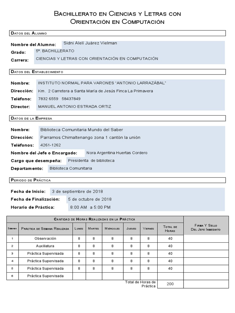 SEMANA PRÁCTICA DE SEMANA REALIZADA LUNES MARTES MIÉRCOLES JUEVES VIERNES DEL JEFE INMEDIATO