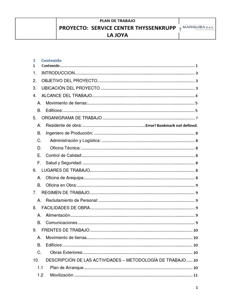 MARQUISA S.A.C. describirá en el presente documento, el plan de ejecución